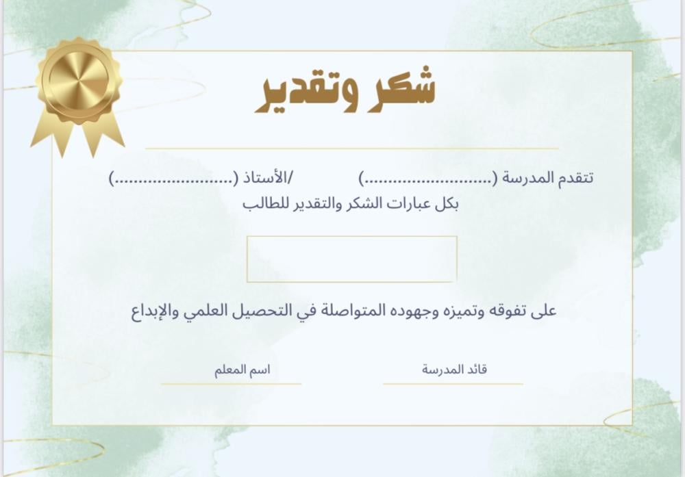 كرّمي طلابك وطالباتك بأناقة وتميّز مع شهادة شكر وتقدير الجاهزة للطباعة من متجر eddigitopia واجعلي التكريم لحظة لا تُنسى تعكس الجهد وتقدّر الإنجاز.