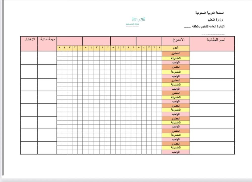 مواصفات سجل متابعه يومي للطالبات
